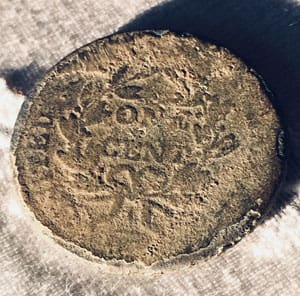 My fourth U.S. favorite find for September 2018 is the King George I Farthing & Draped Bust Large Cent, found by Jonathan S. and his father from Massachusetts with their AT Pro’s.Jonathan’s story: My dad and I have been a great father and son duo for many years now. This past weekend, we took part in our club’s farm hunt, the Granite State Treasure Hunters Club in New Hampshire. Out of about 40 participants Sunday, only two copper coins were recovered. So, I was just starting a row in the field after we arrived, and I hit a signal strong. I checked it again with my AT Pro then dug my plug. About 6 inches down, using my Garrett carrot I uncovered my oldest coin to date! Although its a bit toasted it was clear enough to see it was a KGI with a date of 1719! I was so pumped I jumped up and couldn’t even hold it as members looked on because I was shaking so much! The excitement and feeling of finding something so historic is why I love this hobby!