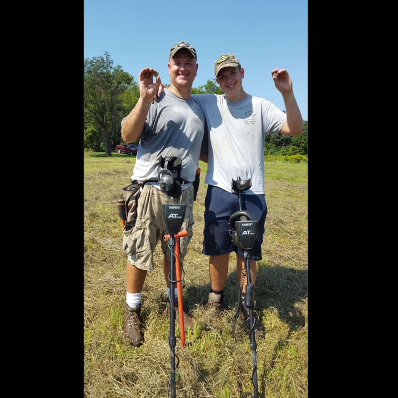 Our members in the club told me to write into Garrett, so that’s why I’m telling you our story. And yes us! My dad, two hours later, pulled the second copper of the day, a Draped Bust Large cent! Although his coin was a bit better in shape, we still couldn’t make out the date. Dad found his piece of history almost 12 inches deep and said it was giving him a faint 74-82 signal. After he opened his plug, the tone cleaned up and got stronger. Using his carrot he pin pointed and yelled COPPER! Everyone ran over and was so happy the father/son duo pulled the best coins of the day.