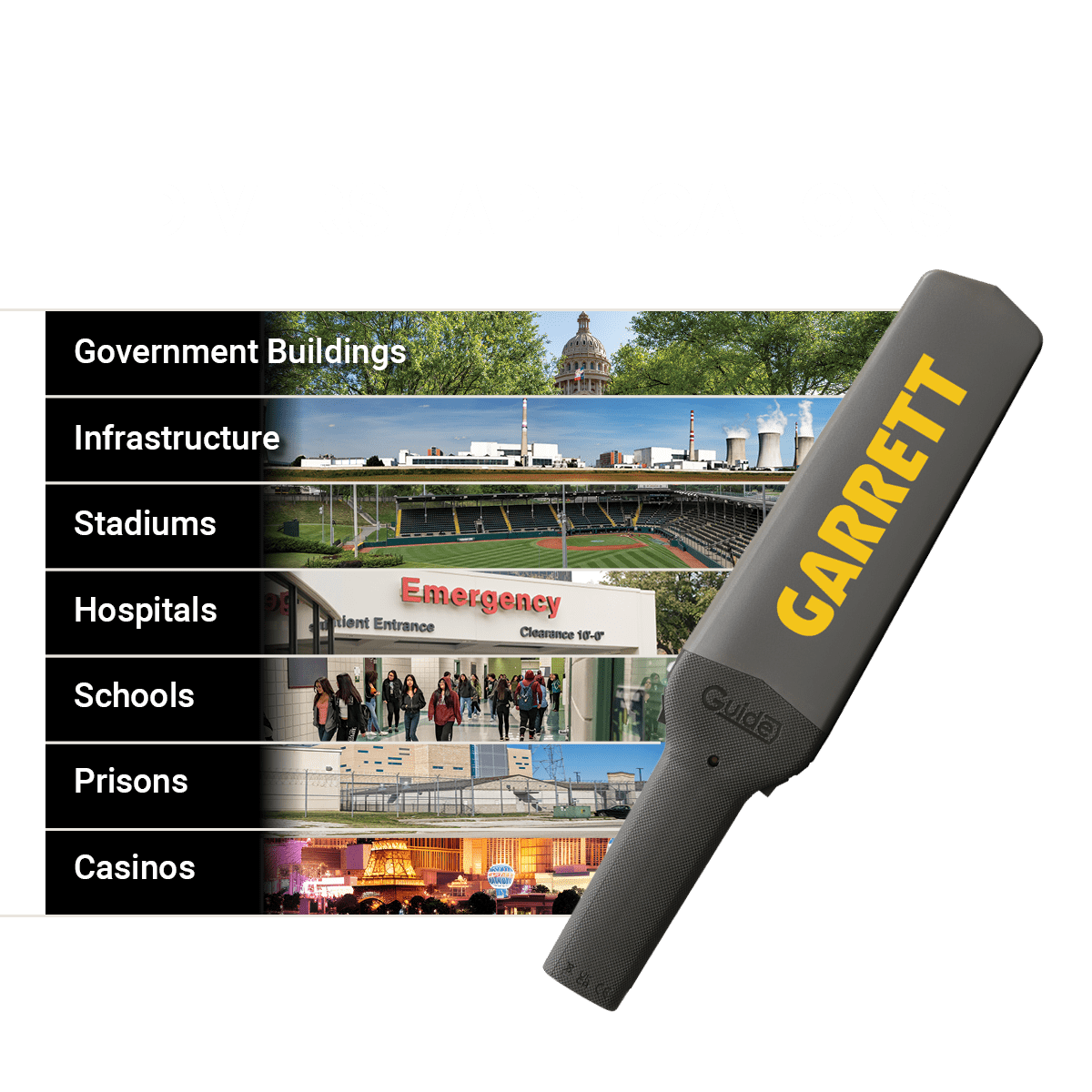 Garrett Metal Detectors is a leader in the u003ca class=u0022yellowu0022 href=u0022https://garrett.com/securityu0022u003esecurityu003c/au003e industry and is known for designing high-quality metal detection products. We handle a variety of security needs, from u003ca class=u0022yellowu0022 href=u0022https://garrett.com/school-securityu0022u003eschoolsu003c/au003e and airports to u003ca class=u0022yellowu0022 href=u0022https://garrett.com/hospitalu0022u003ehospitalsu003c/au003e and u003ca class=u0022yellowu0022 href=u0022https://garrett.com/stadium-metal-detectorsu0022u003estadiumsu003c/au003e. Our commitment to rigorous testing and maximum protection is what makes us the trusted choice for protecting people and their assets.