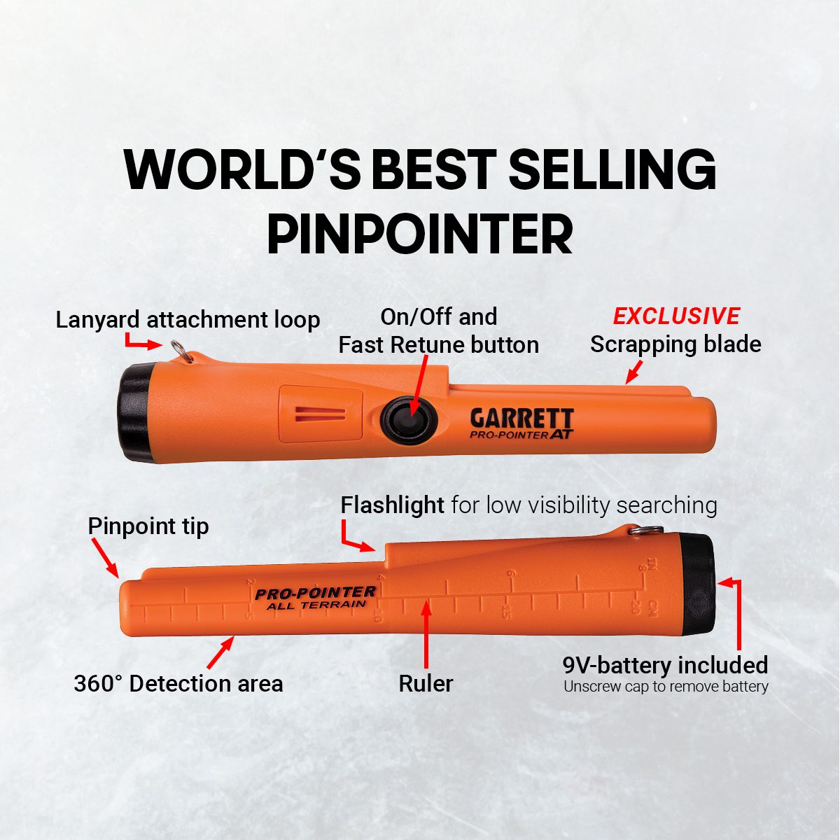 World’s best-selling pinpointer. Submersible to 20 feet. Includes fast retune feature, LED flashlight, 3 sensitivity levels, and belt holster.