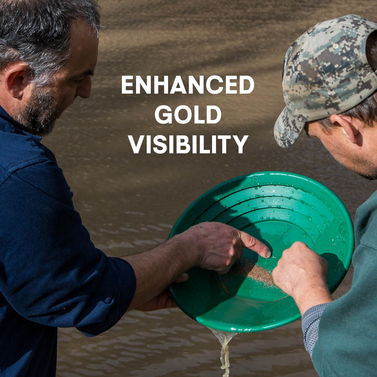 - Enhanced Visibility: Our green color pans enhance gold visibility, making it easier to spot tiny gold flakes against the pan’s background.