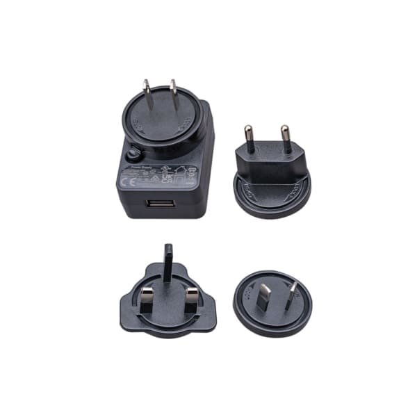 3A High Current Power Adapter for use in charging up to 5 Garrett Guides in sequence. Includes three (3) swappable alternative international plugs.