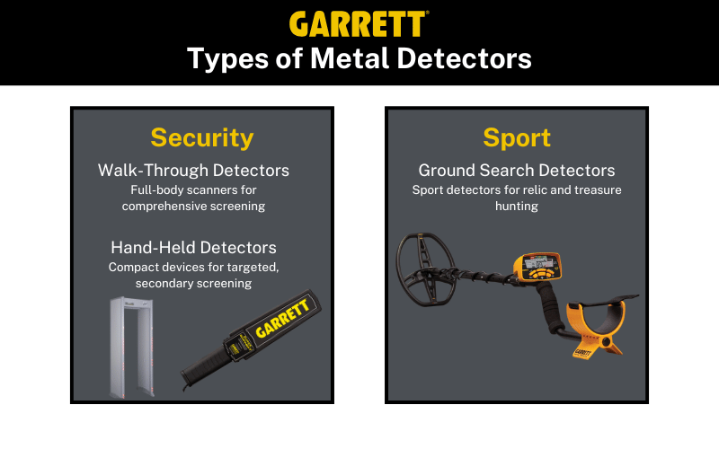 Different detectors are designed for specific purposes, ranging from targeted security screening to outdoor treasure hunting:
