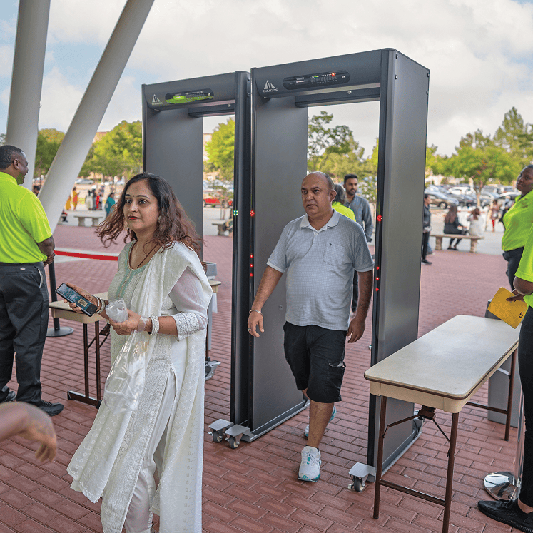 In tandem with airport divesting procedures and x-ray baggage scanning, metal detectors can screen vast crowds of people with a minimal number of false alarms due to non-threat objects such as knee/joint/hip replacements, pacemakers, and wedding rings. This fast screening process maintains security while maximizing the comfort of ticketholders being screened and ensuring that they will board their flight with peace of mind, confident they’ve entered a safe environment.