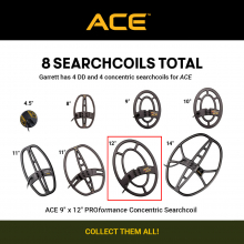 This searchcoil is designed to work with traditional ACE model detectors, such as: ACE 100, ACE 150, ACE 200, ACE 200i, ACE 250, ACE 300, ACE 300i, ACE 350, EuroACE, ACE 400 and 400i.