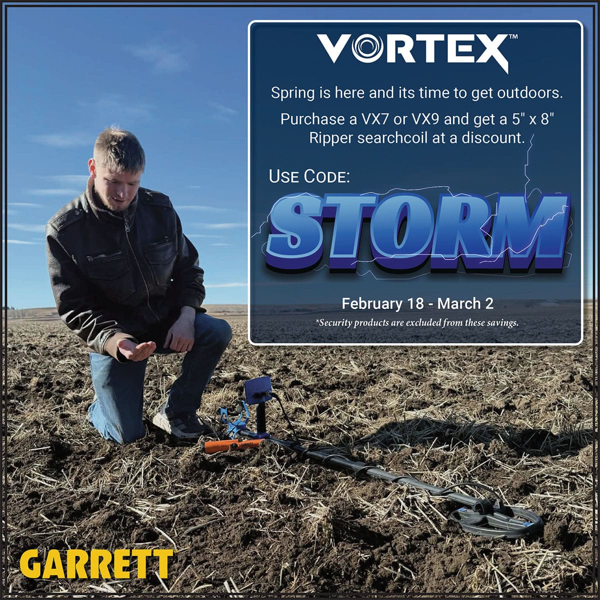 Buy a VX7 or VX9 & get a Garrett Vortex 5″ x 8″ DD Ripper™ Searchcoil at a substantial savings.