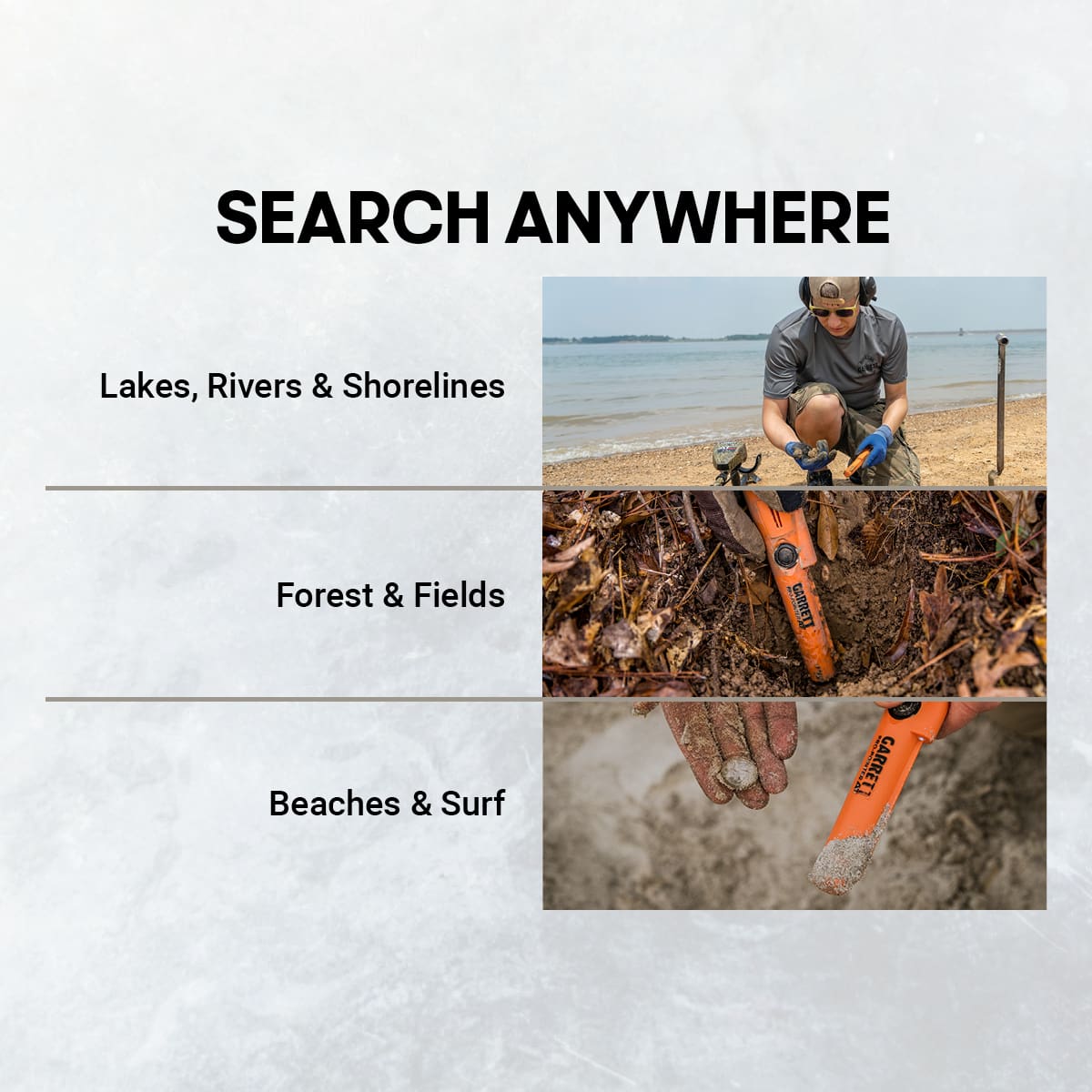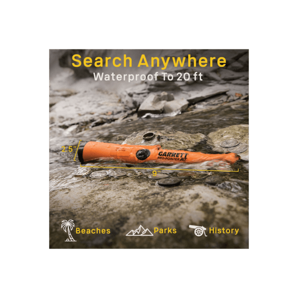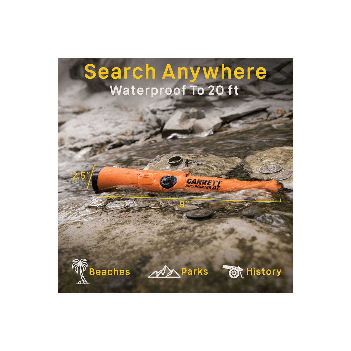 World’s best-selling pinpointer. Submersible to 20 feet. Includes fast retune feature, LED flashlight, 3 sensitivity levels, and belt holster.