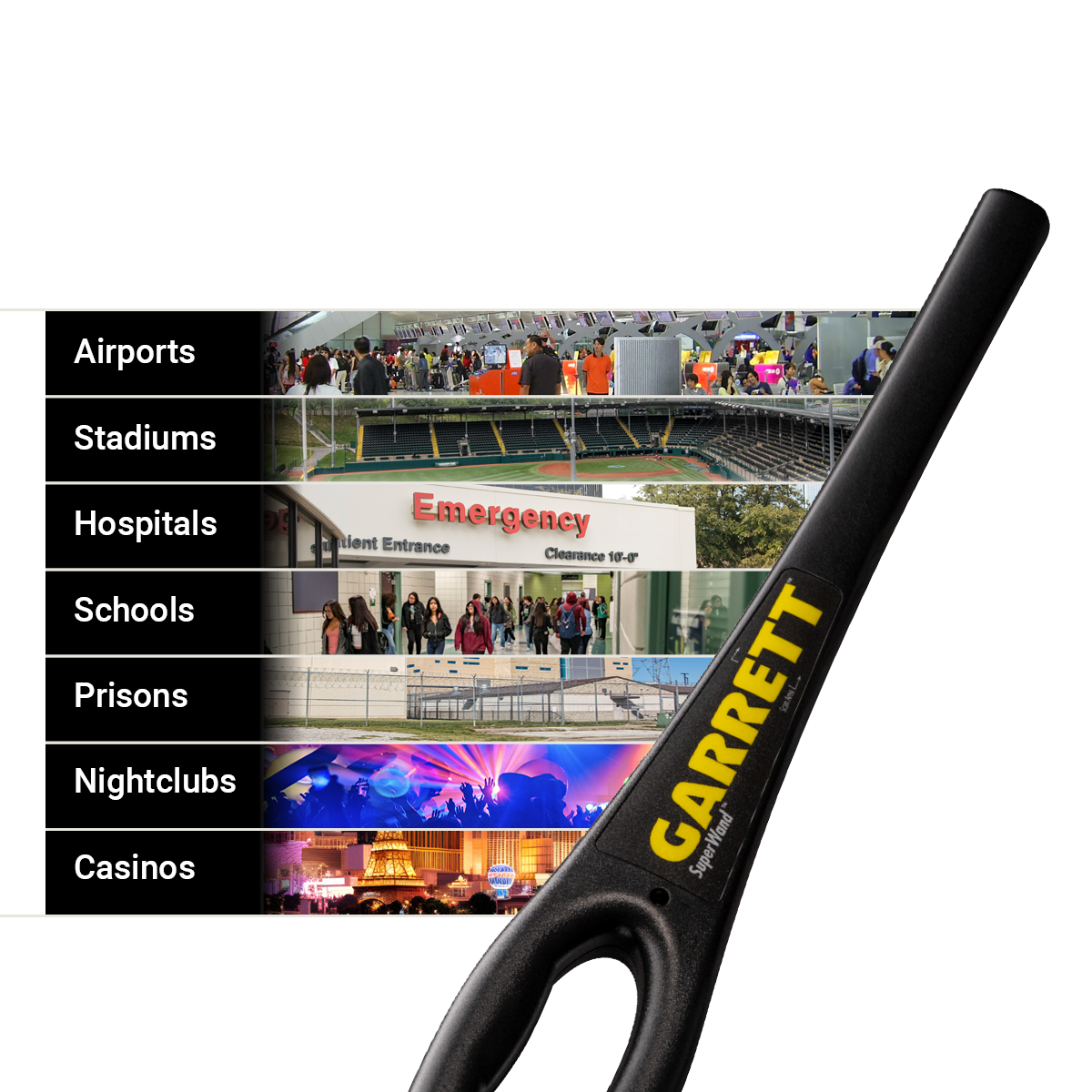 The Garrett SuperWand represents high reliability and precision in metal detection for secondary screening. Designed with the needs of security professionals and law enforcement in mind, this hand-held metal detector wand is an essential tool for ensuring safety at airports and other security checkpoints.