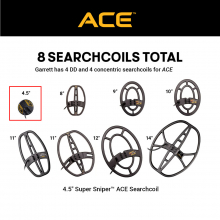 This searchcoil is designed to work with traditional ACE model detectors, such as: ACE 100, ACE 150, ACE 200, ACE 200i, ACE 250, ACE 300, ACE 300i, ACE 350, EuroACE, ACE 400 and 400i.