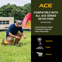 This searchcoil is designed to work with traditional ACE model detectors, such as: ACE 100, ACE 150, ACE 200, ACE 200i, ACE 250, ACE 300, ACE 300i, ACE 350, EuroACE, ACE 400 and 400i.