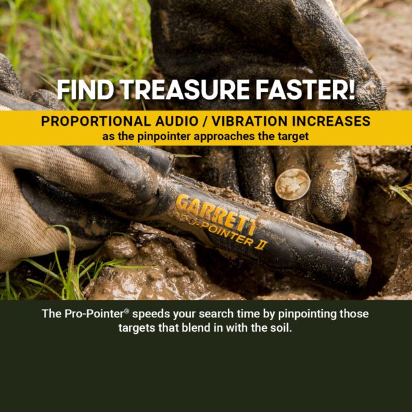 - Patented proportional audio/vibration increases as the pinpointer approaches the target